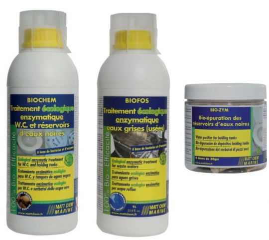 Le choix du produit est laissé au confort de l'utilisateur : "Bio-Chem est une solution liquide prête à 50'utilisation. Bio-Zym se présente en sachets qui se dissolvent dans l'eau. Une dose de l'united nations ou un sachet de fifty'autre dans le réservoir mélangée à 10 litres d'eau au moment de fifty'hivernage permettra aux bactéries d'agir tout au long de la période sans navigation."